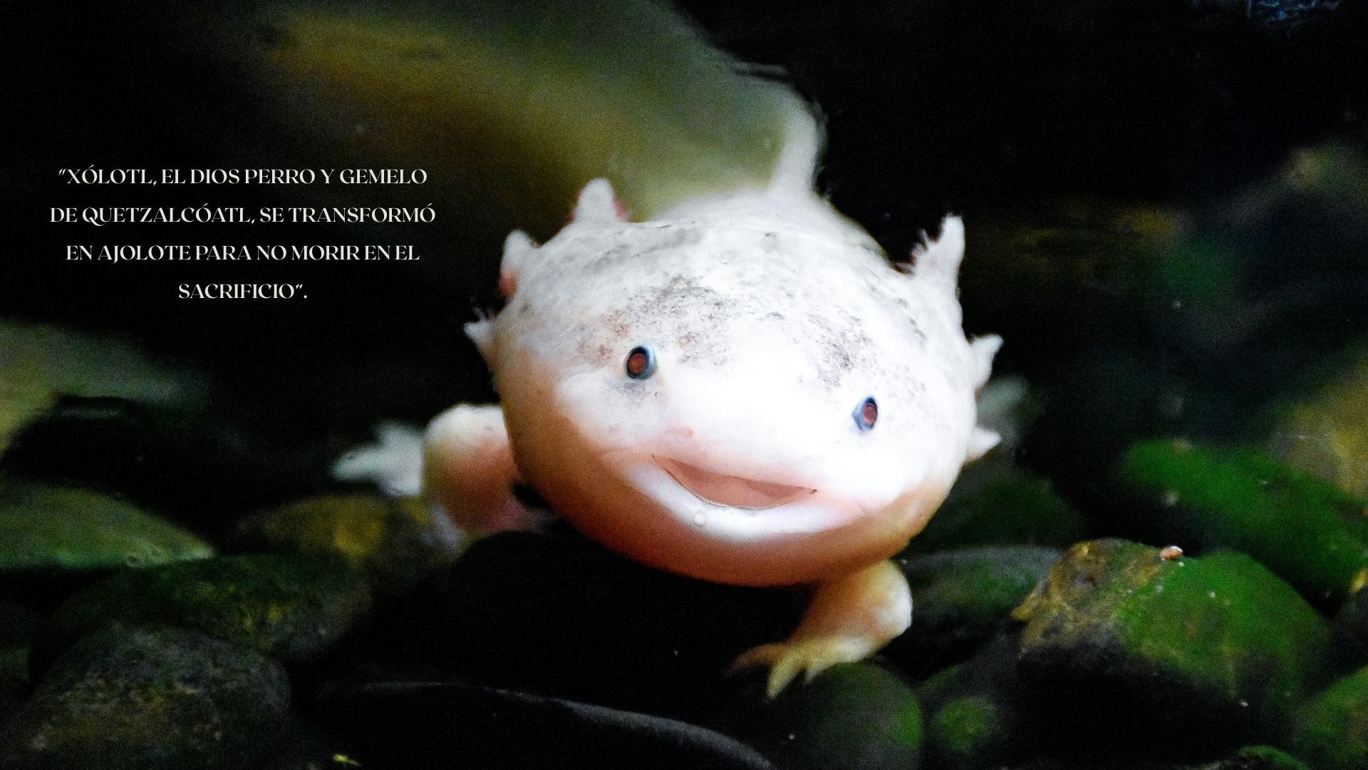 Según la mitología mexica, Xólotl era el dios perro, hermano gemelo de Quetzalcóatl, y representaba el aspecto oscuro, terrestre y mortal del dios de la luz. Cuando los dioses se reunieron para crear el Quinto Sol, el nuevo ciclo del mundo, acordaron que todos debían sacrificarse para darle movimiento al astro. Pero Xólotl, temiendo la muerte, se negó a hacerlo y huyó para evitar su destino. En su intento de escapar, se transformó varias veces: primero en maíz, luego en maguey y, finalmente, en un pequeño ser acuático, el ajolote, que se escondía en canales y lagos. Sin embargo, los demás dioses lo descubrieron y, aun así, su última metamorfosis quedó marcada en la Tierra. Desde entonces, el ajolote simboliza la resistencia a la muerte, la transformación y el vínculo entre el mundo de los vivos y el de los dioses, recordando la eterna dualidad de la vida y la muerte que Xólotl encarna.