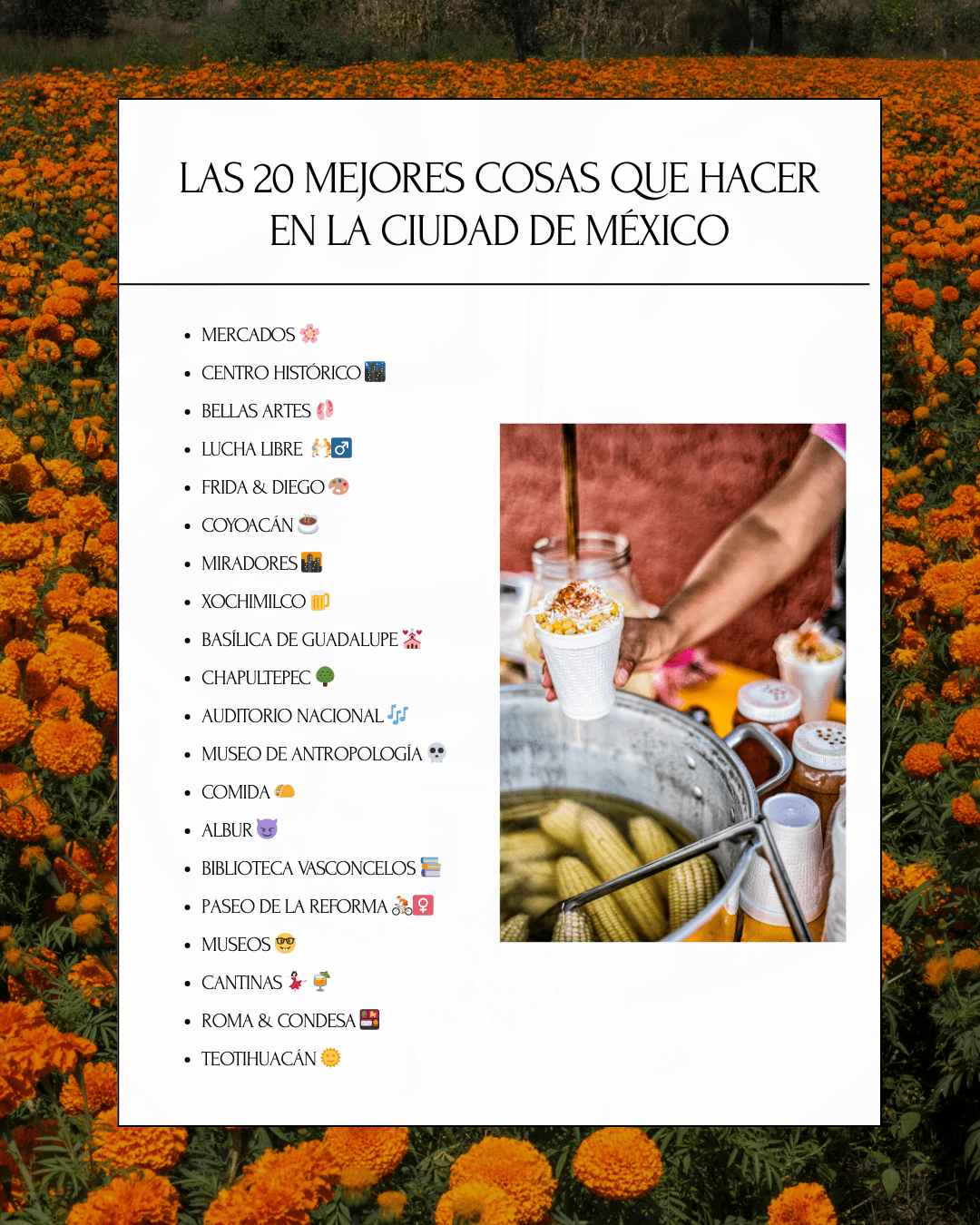 Aquí va mi lista personal de 20 cosas imperdibles en la Ciudad de México, la ciudad que tiene flores todo el año 🌺